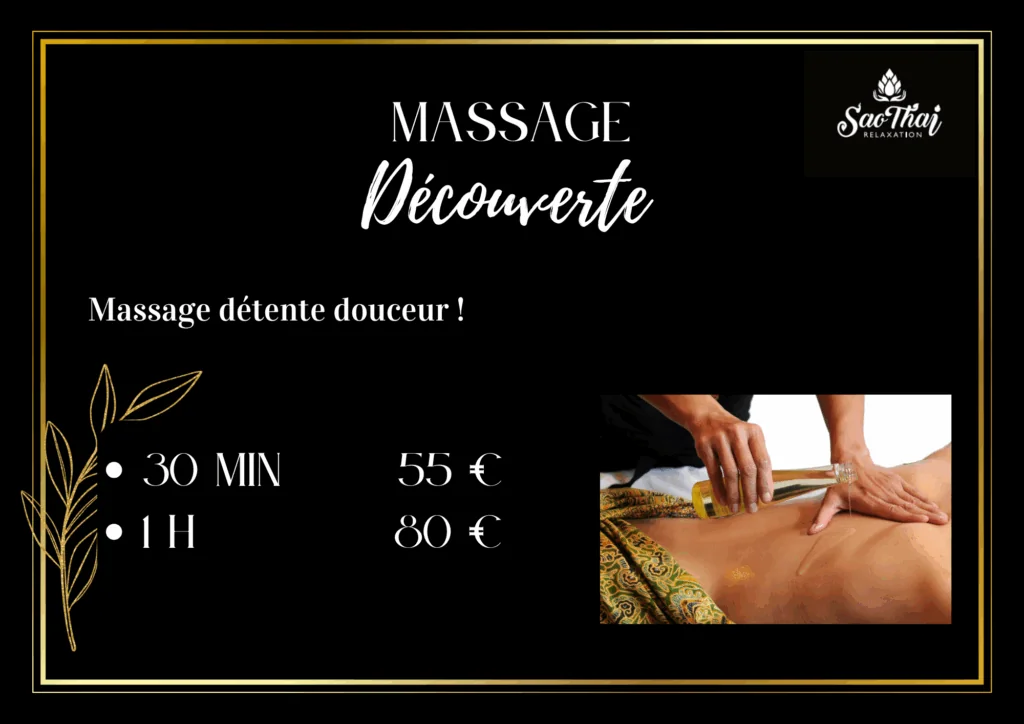 Dans un décor raffiné , Sao Thai relaxation met à votre disposition le savoir faire ancestral du massage Thai et les techniques contemporaines de relaxation au bénéfice de votre bien-être. Venez découvrir la douceur du pays du sourire au salon Sao Thai relaxation.